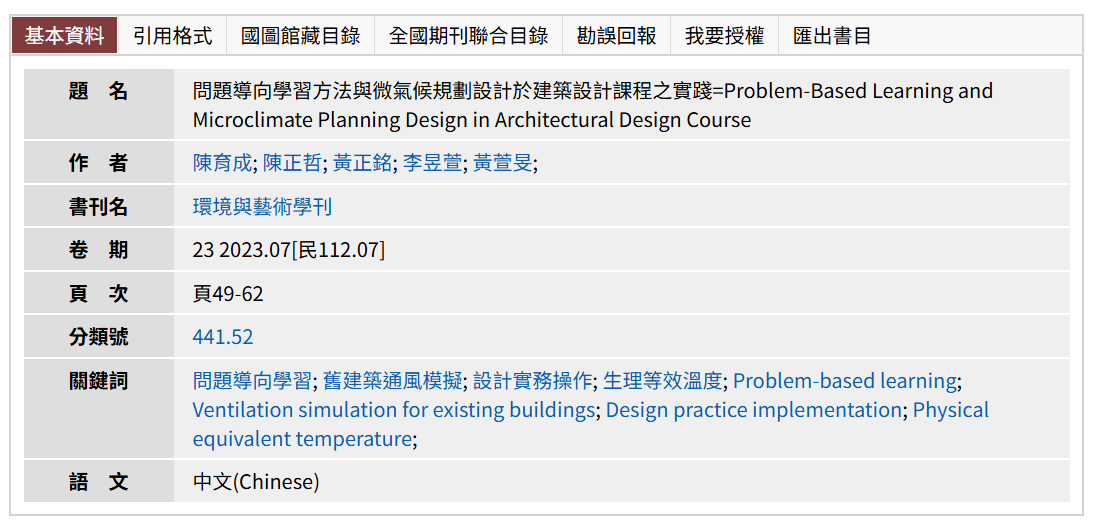 論文名稱(篇名)問題導向學習方法與微氣候規劃設計於建築設計課程之實踐