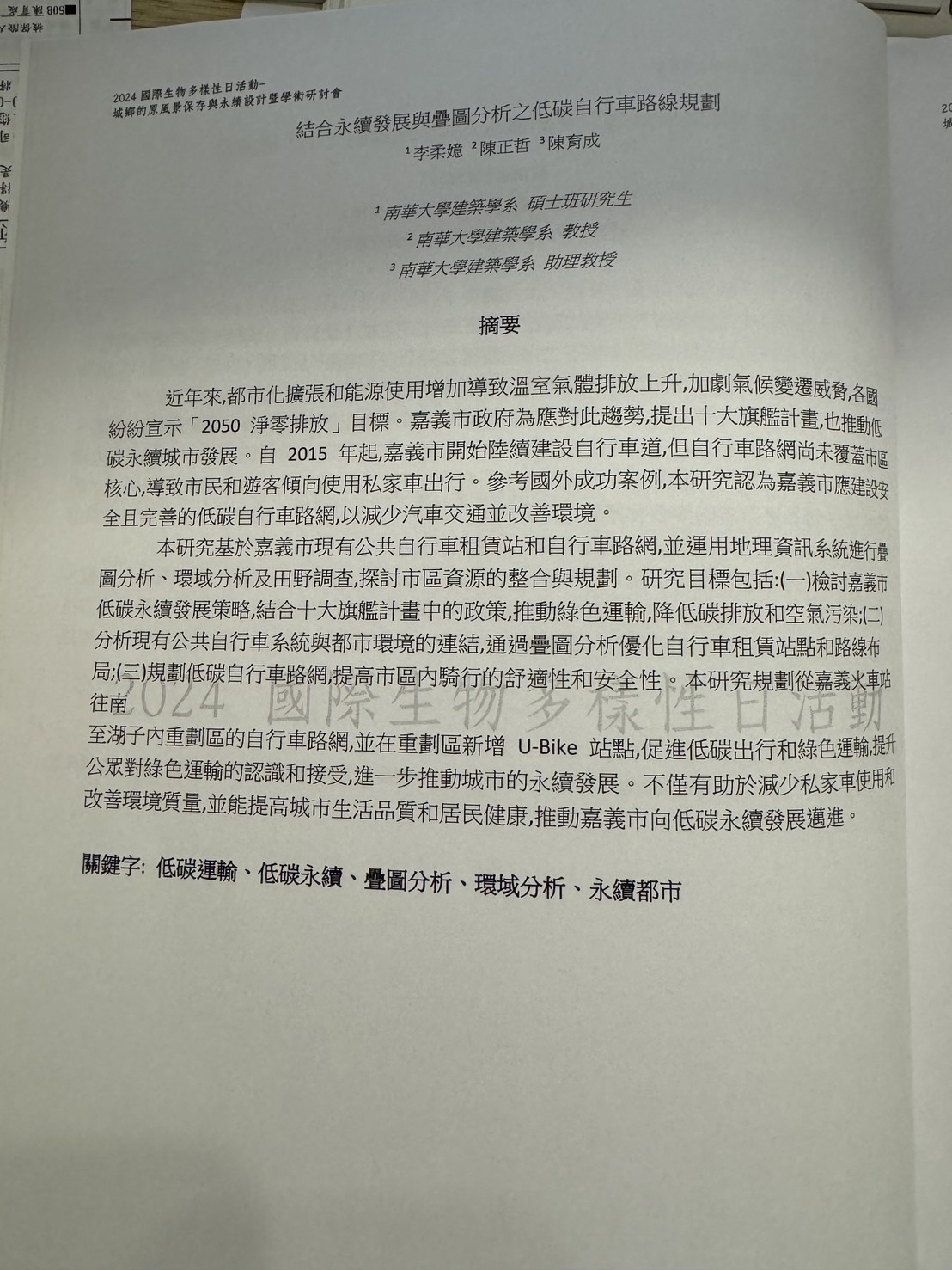 論文名稱結合永續發展與疊圖分析之低碳自行車路線規劃