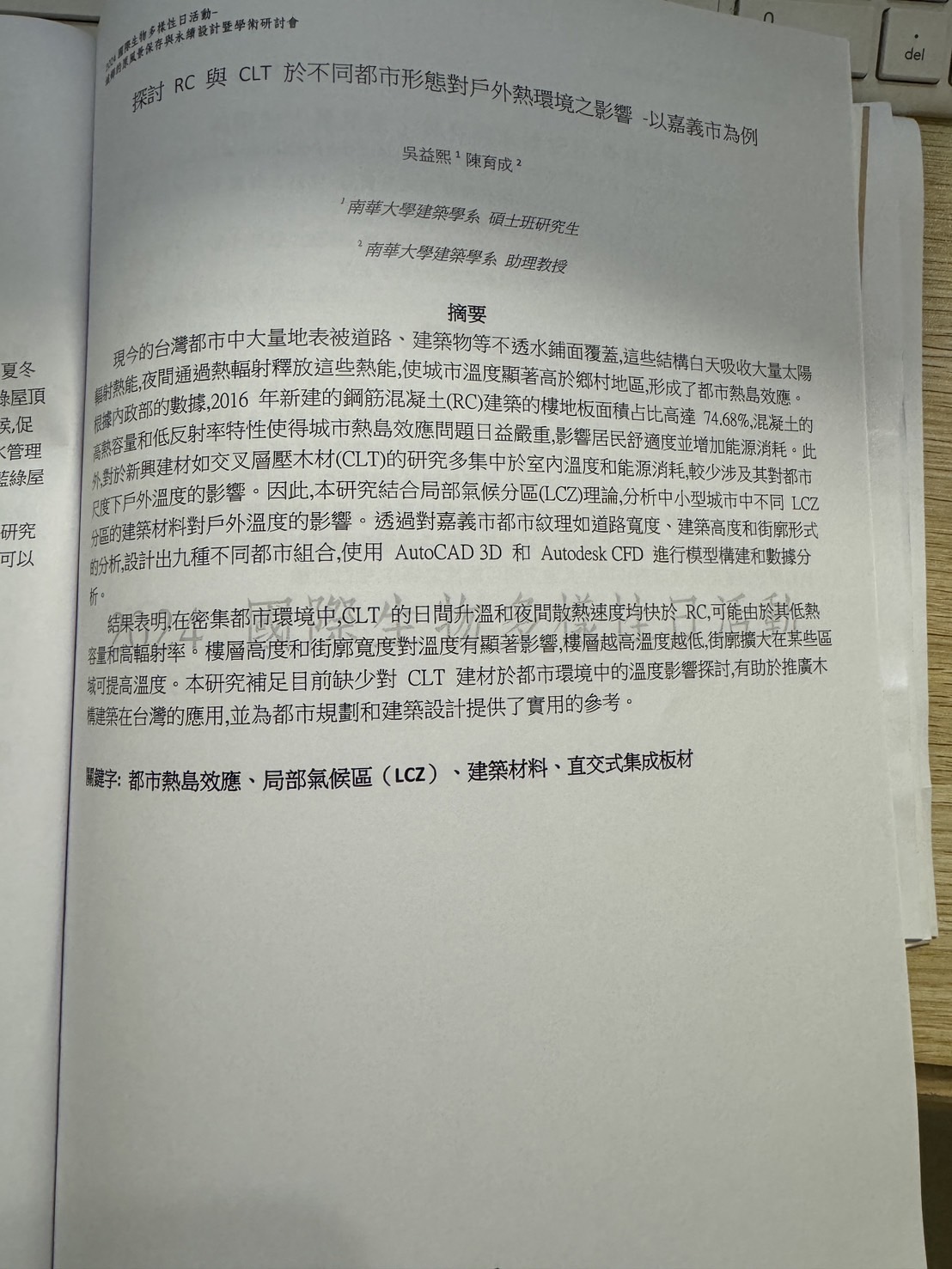 論文名稱探討RC與 CLT於不同都市形態對戶外熱環境之影響-以嘉義市為例